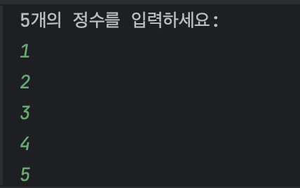 System.out.println("5개의 정수를 입력하세요:");