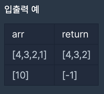 - arr[i] != min 조건을 만족하는 경우에만 answer 배열에 값을 추가하며, idx 변수를 사용해 추가할 위치를 추적한다