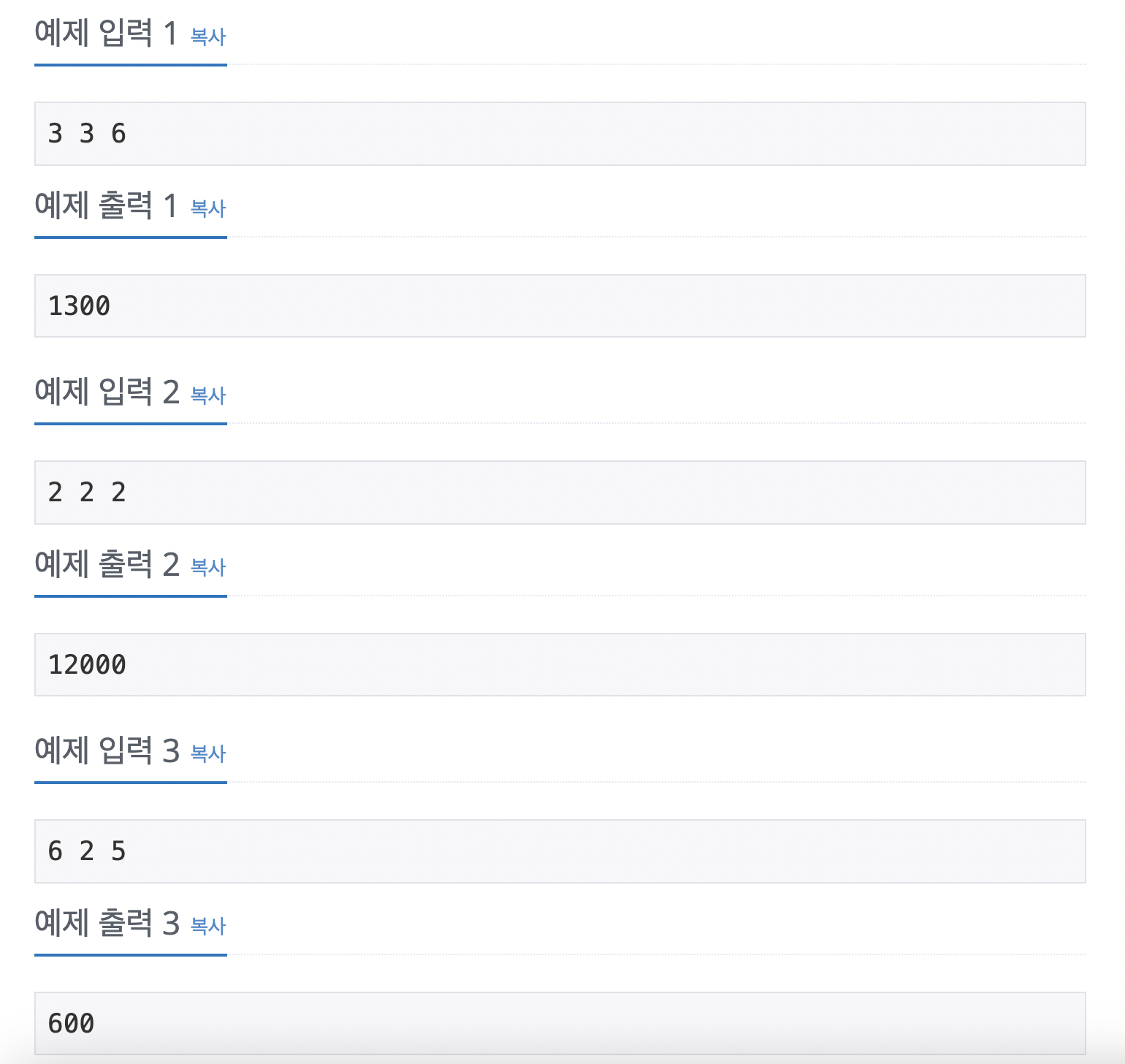 3개 주사위의 나온 눈이 주어질 때, 상금을 계산하는 프로그램을 작성 하시오.