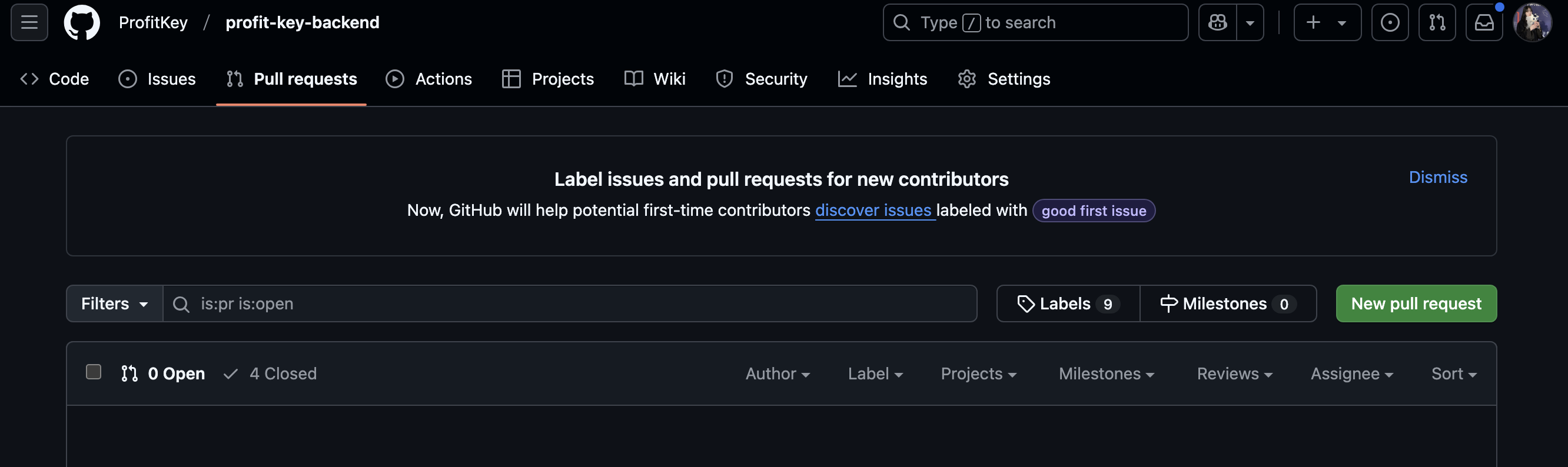 우측에 Assignee에는 일반적으로 PR을 리뷰하거나 승인할 사람을 설정하면 된다.