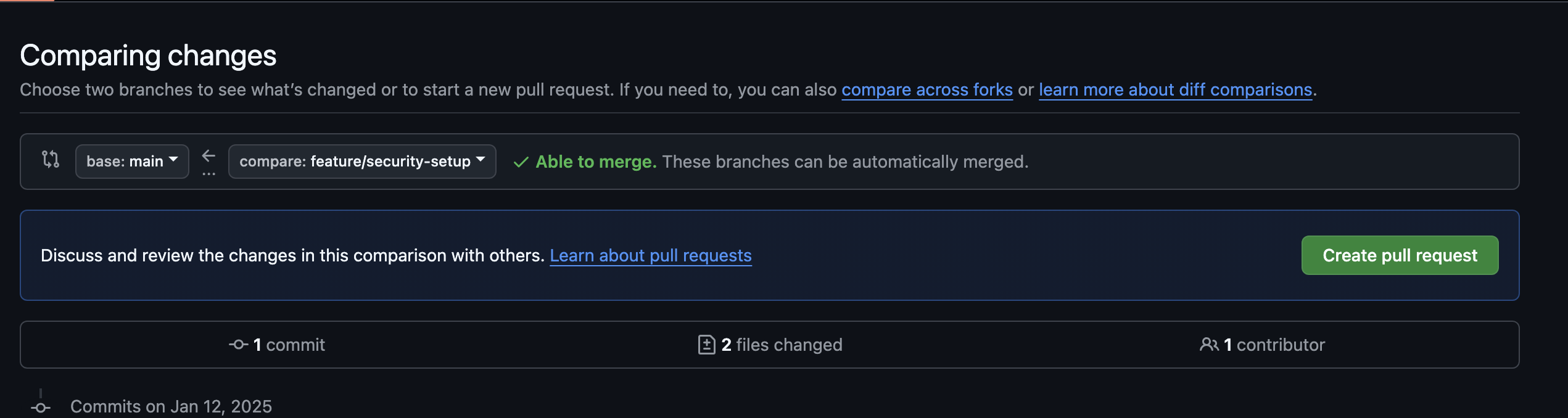그리고 Create pull request 눌렀다