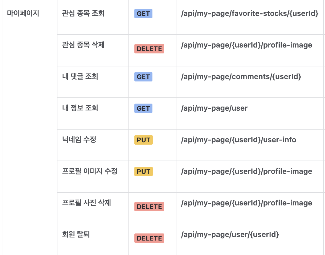 초반에 작성한 api명세에서 중간중간 수정이 되고 있기도 하지만 ;;