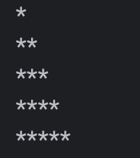 두번째 for문에도 j<=rows를 해버리면 5개씩 5줄 프린트 되는 "*"이 총 5개인 그냥 네모가 나온다.