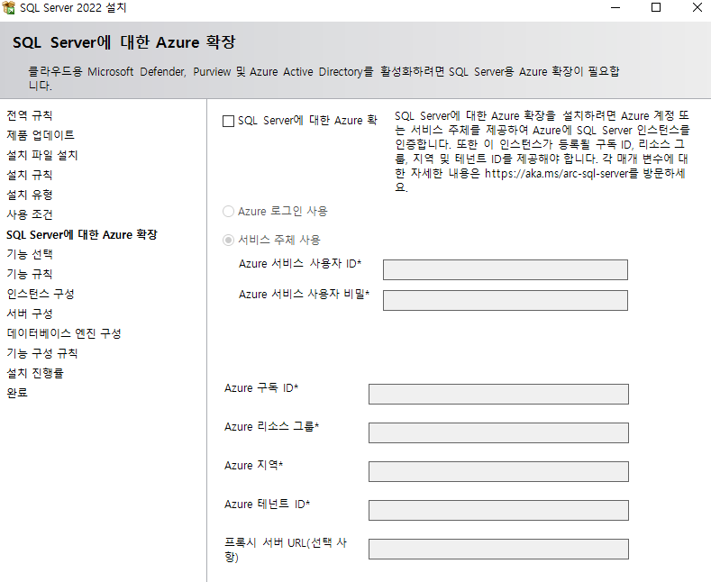 다음 누르다가 Azure 확장 부분에서 체크 풀어준다
