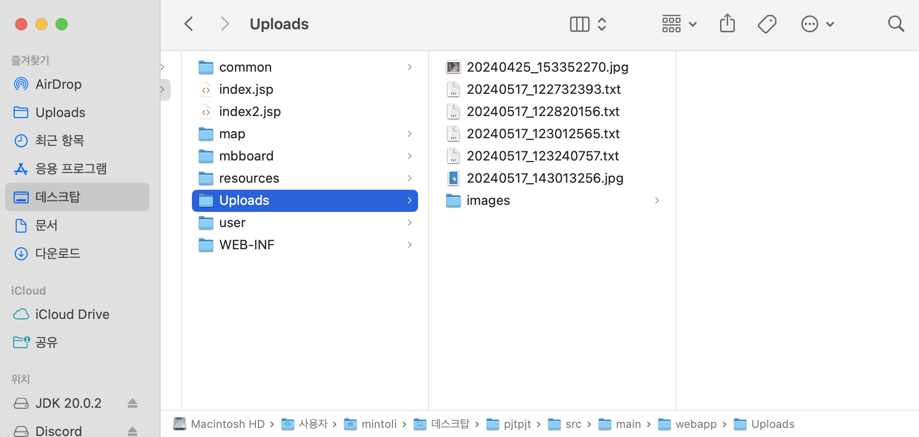 최근에 jsp 게시판에 이미지 업로드 기능을 만들고 싶어서 찾아보다가 이클립스 main - wepapp폴더에 Uploads라는 폴더를 생성하고