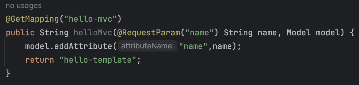 public String helloMvc(@RequestParam("name") String name, Model model) {