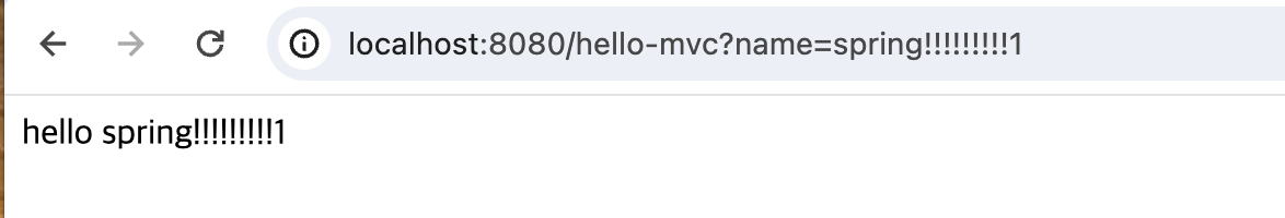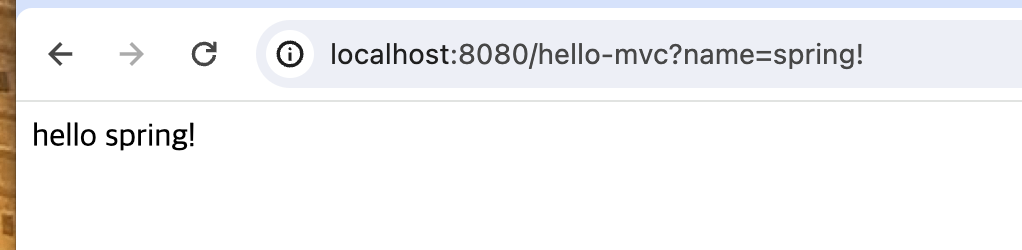 localhost:8080/hello-mvc뒤에 ?name=spring!으로 get방식을 이용해 값을 넣어주면 내용이 바뀐다