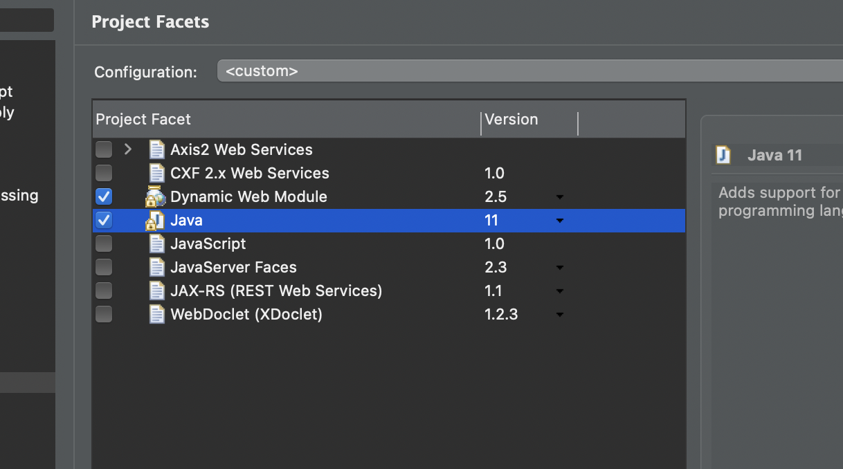 Project Facets에서는 두가지를 바꿔주어야한다.