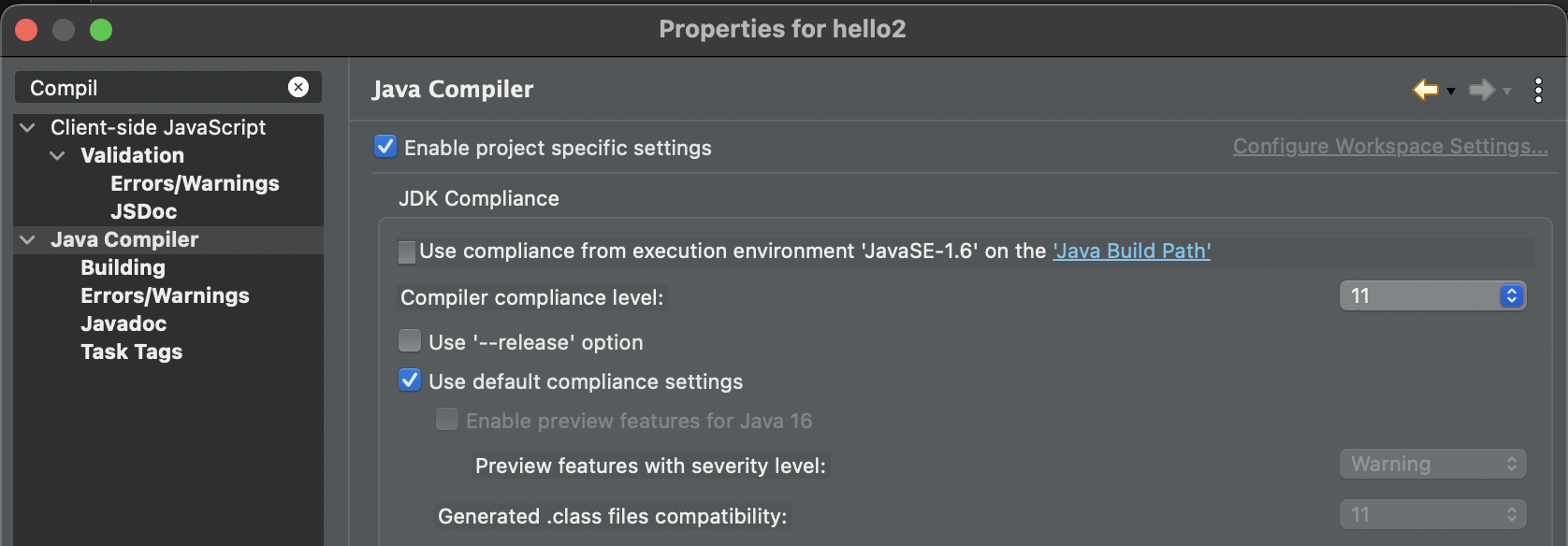 그러면 밑에 Compiler compliance level 을 설정할 수 있다.