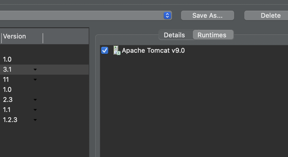 그리고 여기서 오른쪽에 Runtimes에 Tomcat 설정도 해주기 (필수는 아니지만 어차피 저걸 쓸거니까 미리 해둠)