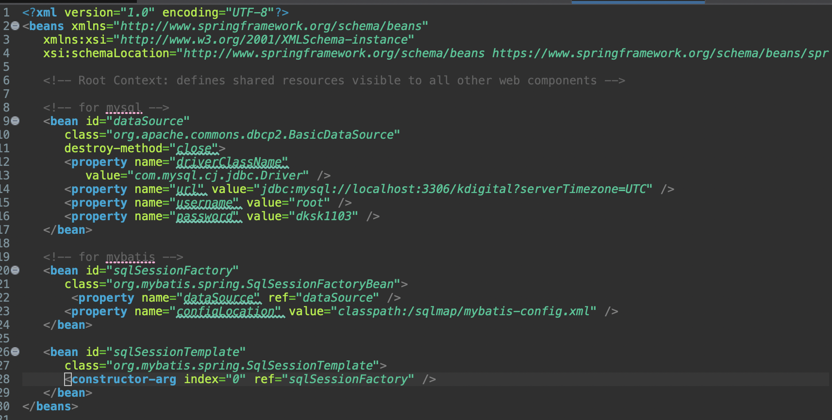 이런식으로 bean을 설정해주는 곳이라고 보면 될듯하다 ,,,,