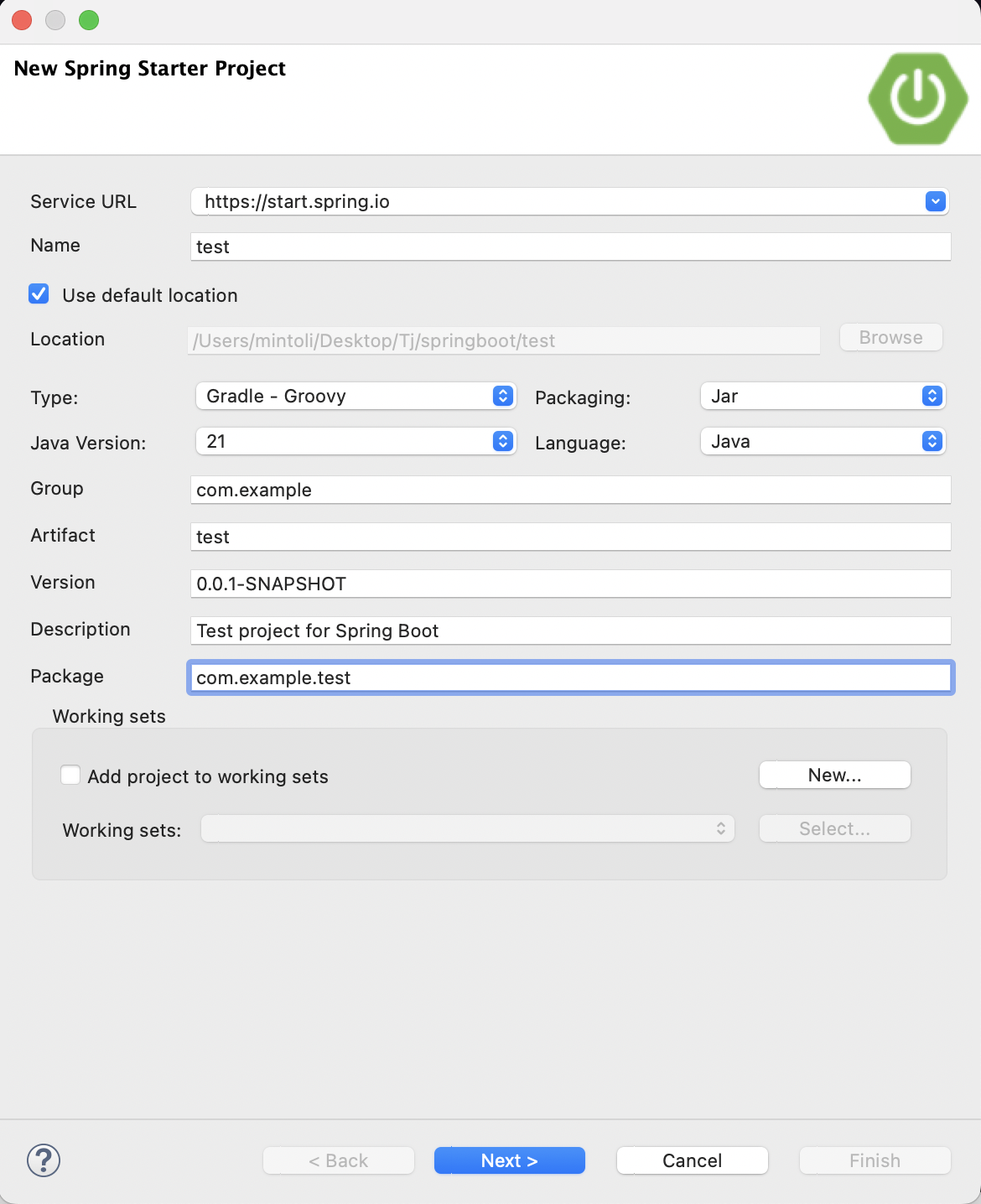 - Type: 프로젝트를 관리하는 도구를 선택하는 항목. 기본값은 ‘Gradle - Groovy’