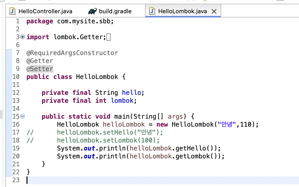그럼 이제 lombok이 잘 실행되어 임포트가 잘 된다!